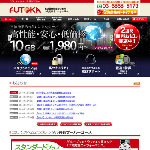 FUTOKAのレンタルサーバー(共有サーバー)・専用サーバーはお客様のリクエストにお応えし、50以上の多彩な機能をご用意しています。